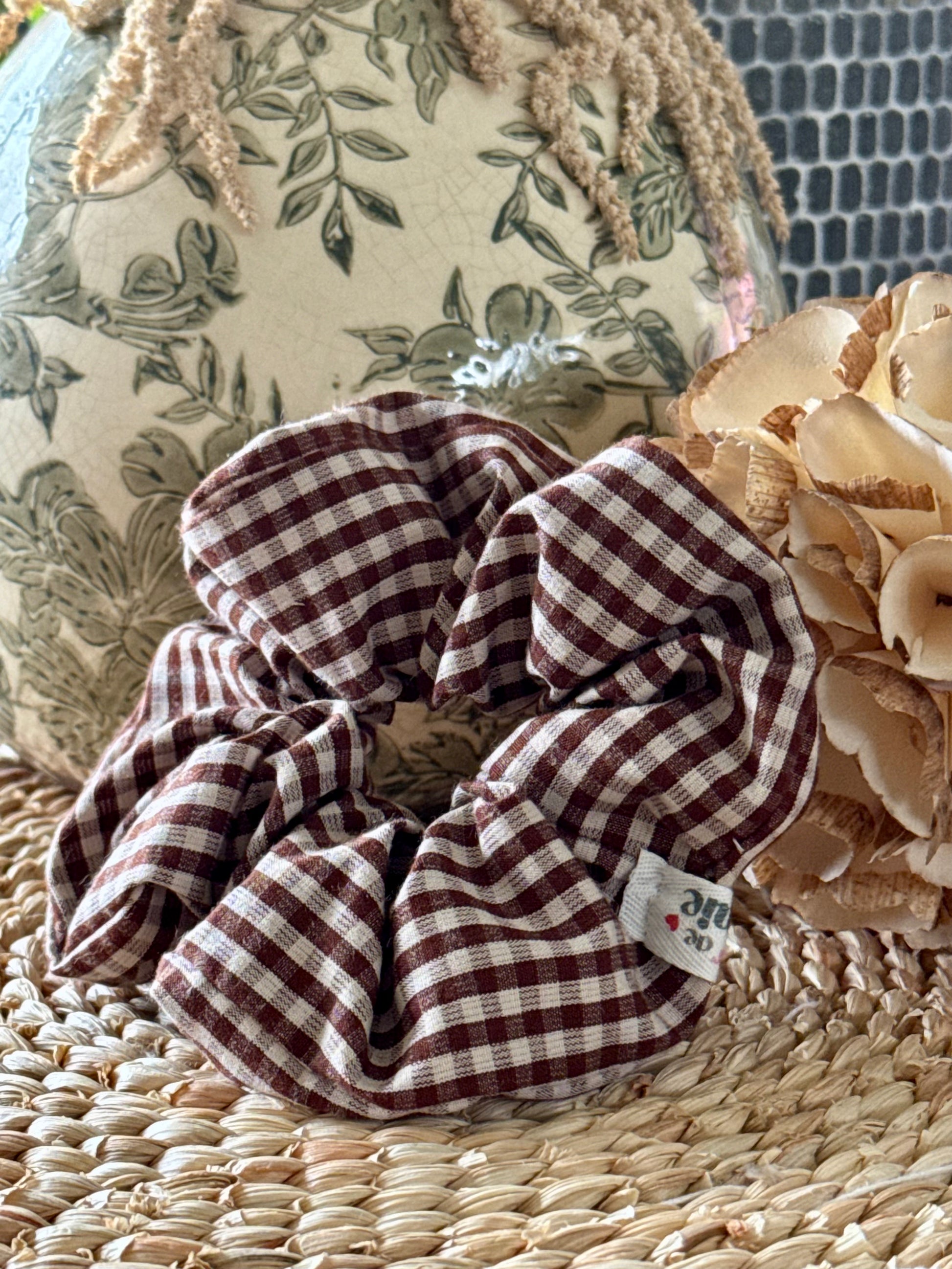 Chouchou « Anna » – Motif vichy marron – Fait main, Made in France