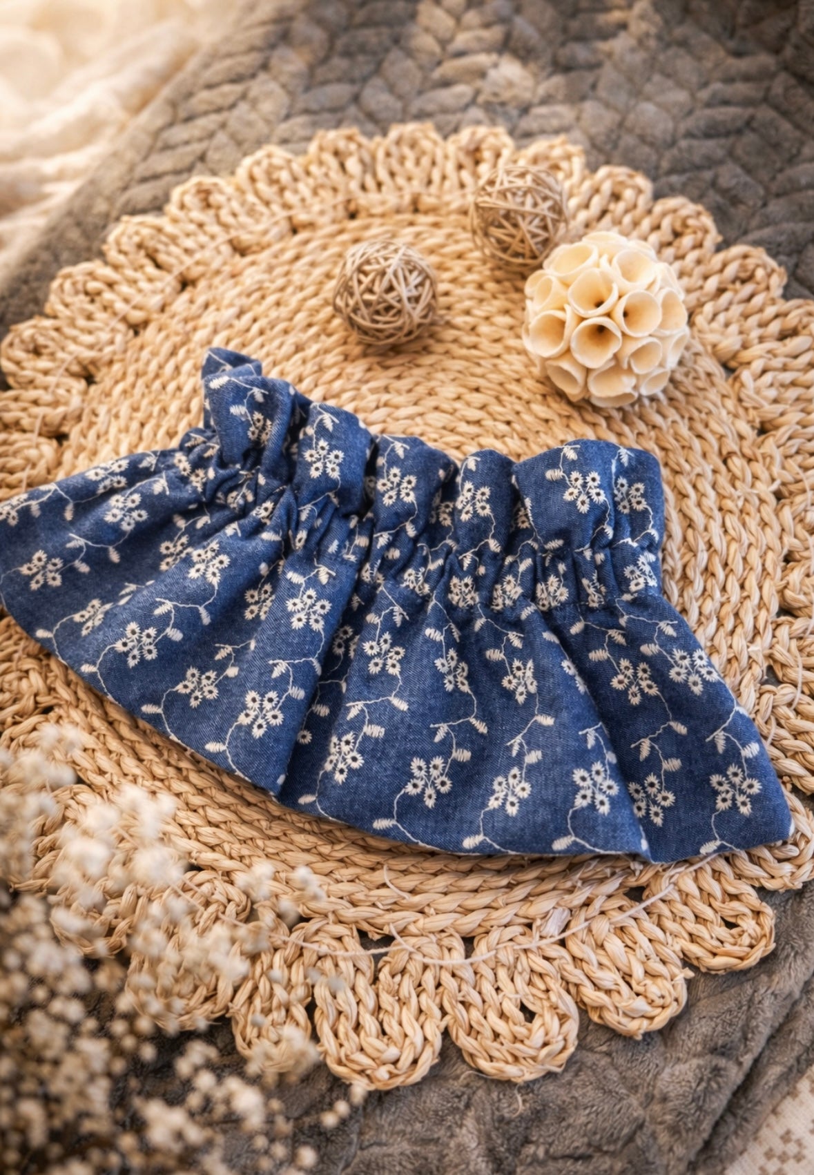 Col “Clémence” – Jean Bleu & Broderie Blanche - Fait main, Made in France